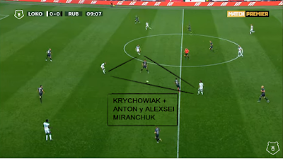 В опорной зоне поляк Крыховяк играет в тандеме с россиянином Дмитрием Бариновым – молодым 22-летним центральным полузащитником, который все ближе подходит к основе национальной сборной своей страны и выделяется как правильным чувством позиции, так и интересной работой при отходе в оборону. Таким образом, экс-хавбек «Севильи» и «ПСЖ» получает больше свободы для взаимодействия с братьями Миранчуками.