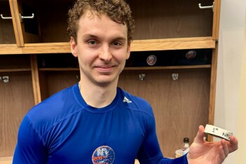 Пресс-служба «островитян» с юмором отнеслась к произошедшему, опубликовав фотографию Ильи с заброшенной шайбой, как это обычно делают с новичками.