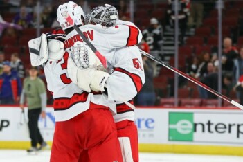 Во вторник вечером «Каролина Харрикейнз» стала первой командой, пробившейся во второй раунд плей-офф, одержав победу над «Нью-Джерси Девилз» 5:4 в двойном овертайме пятого матча серии.