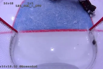 Судья засчитал гол в пользу СКА, хотя видеоповтор показал, что шайба вошла в ворота на самом деле сбоку через дыру в сетке.