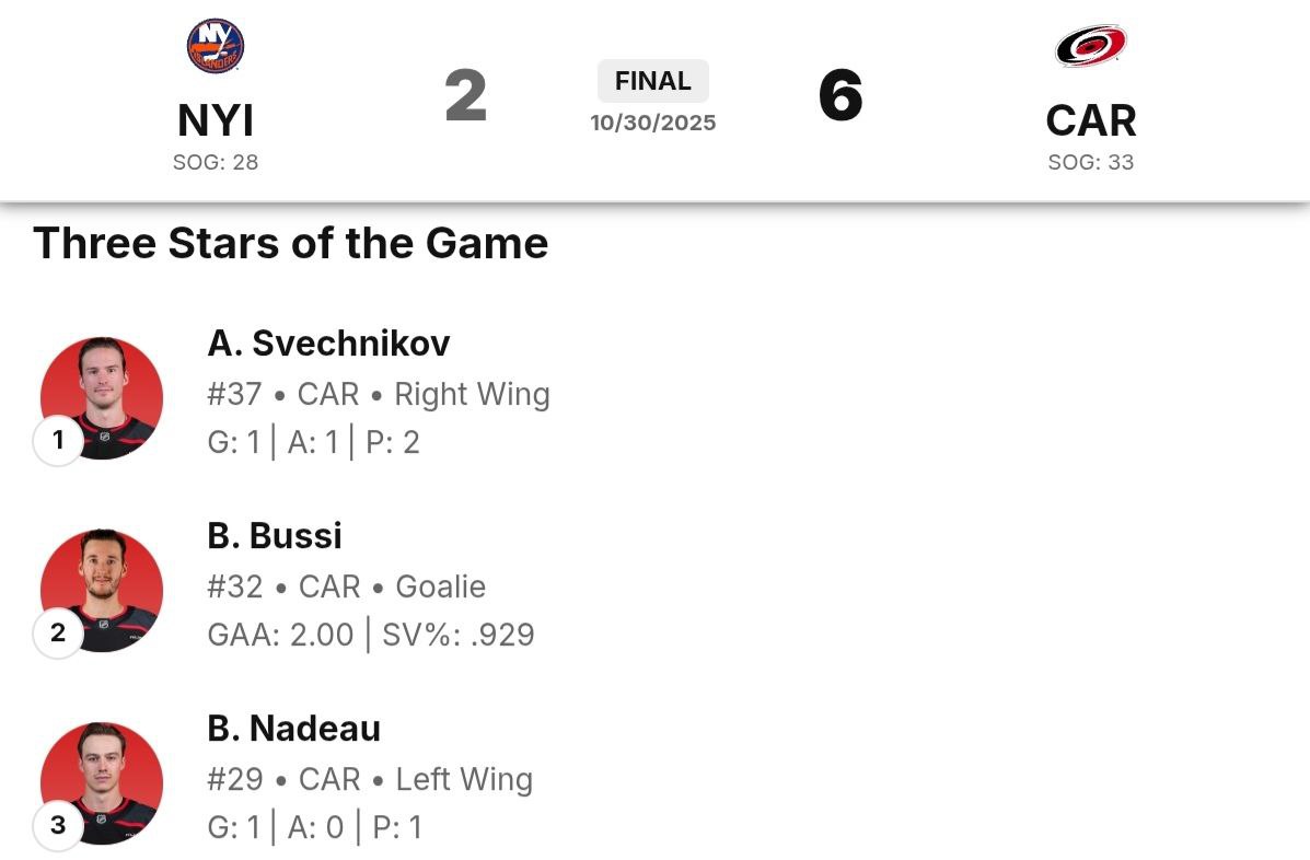Результативная игра Свечникова поспособствовала крупной победе (6:2) «Каролины» над «островитянами».