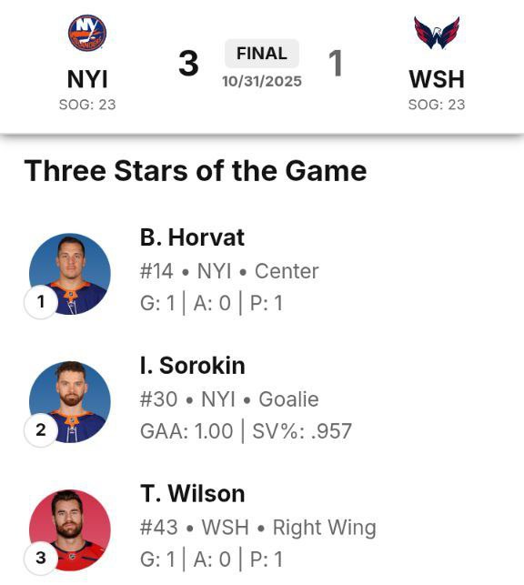 – Сорокин украл эту победу для «Айлс», сделав несколько важнейших сэйвов в начале. А дальше уже партнеры его поддержали.@seanyhockey: