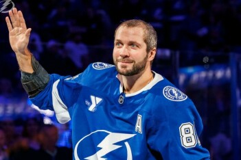 Однако в четверг перед матчем с «Далласом» российский нападающий «Тампы» все же продемонстрировал редкую для себя улыбку, когда его чествовали по поводу 1000 набранных очков за карьеру в НХЛ.