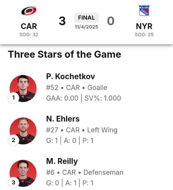 – С учетом такой потрясающей игры Кочеткова у «Каролины» теперь есть три вратаря с обоснованными претензиями на то, чтобы являться основными. Мне очень нравится этот трехглавый дракон.@Salzy0991: