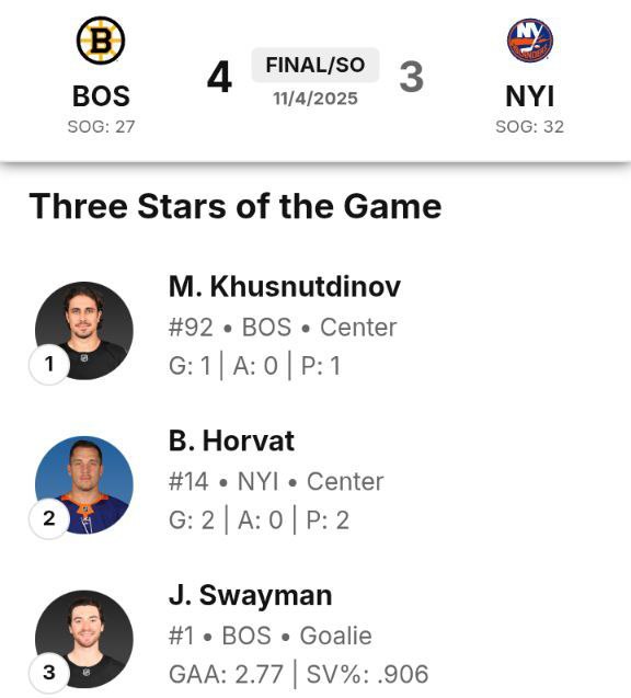 Фаны «Бостона» прокомментировали звездный перфоманс Хуснутдинова в матче с «Айлендерс»