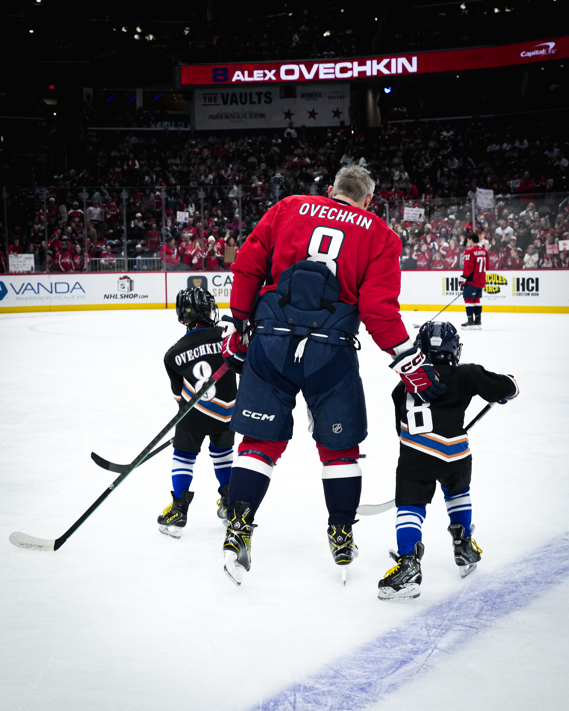 Накануне церемонии в честь 900 голов и 1500 игр Алекс Овечкин вместе со своими сыновьями, Сергеем и Ильёй, вышел на раскатку перед матчем среды против «Виннипег Джетс».