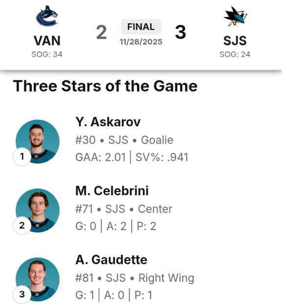 – Аскаров явно реабилитировался за матч с «Колорадо». Очередная победа «Шаркс», которую он украл для команды.@Serenitynow1776: