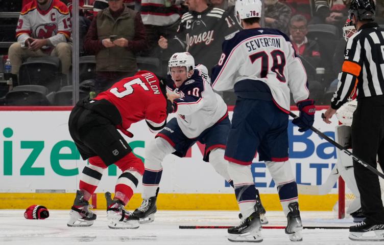 В начале второго периода встречи с «Дэвилз» мощный форвард «Коламбуса», пытаясь защитить юную звезду «Блю Джекетс» Адама Фантилли, вступил в бой с Бренденом Диллоном, с помощью двух ударов впечатав в лед канадца, проводившего свой 1000-й матч в НХЛ.