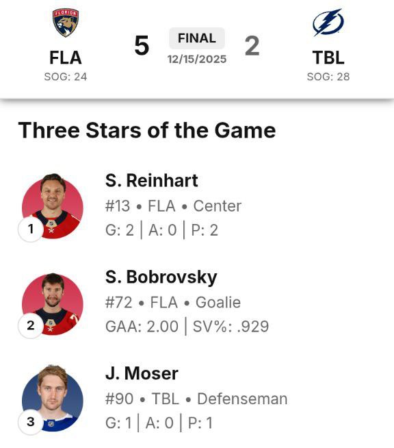 – Еще в начале игры было ощущение, что как бы здорово ни сыграли «Лайтнинг», Бобровский все равно украдет победу для «Пантерз». Боб явно поймал волну.@Drago_Lightning: