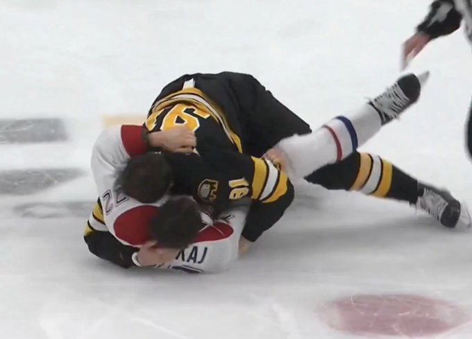 Во вторник 30-летний защитник «Бостона» не упустил возможности схлестнуться с тафгаем «Монреаля» Арбером Зекаем, задав тон матчу, в котором было забито 8 голов.