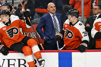 Фрагмент, на котором Токкет и Мичков что-то обсуждают на скамейке запасных во время дневного матча «Флайерз» против «Нью-Йорк Рейнджерс» в субботу, вызвал в интернете волну спекуляций: мол, между тренером и игроком есть разлад и за кулисами команды обязательно происходит какая-то драма.