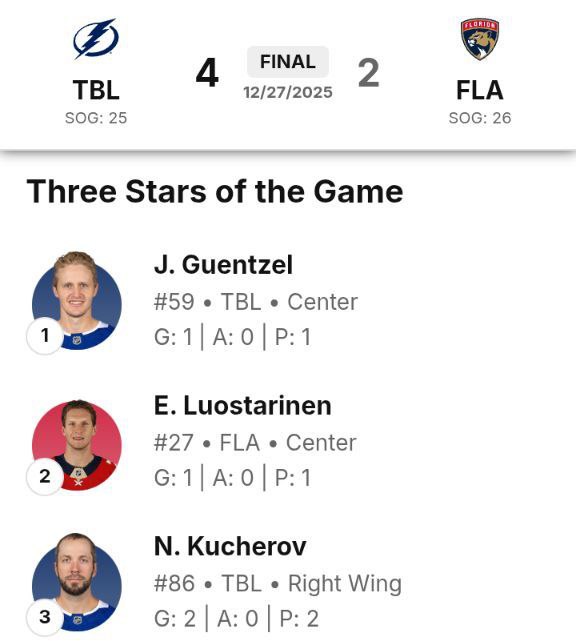 – Сегодня парни бились так, будто это был матч плей-офф, а лидером «Тампы» был не кто иной, как Никита Кучеров. Для игрока, за которым тянется репутация человека, который в некоторых матчах индифферентен и не отдается на 100%, сегодня он выступил совершенно иначе, показав пример всем остальным партнерам. Куч не только забивал, но и во всех случаях по максимуму отрабатывал в обороне, и такое его старание меня невероятно впечатлило. Он зарядил своей энергией всю остальную команду.@jayRecher: