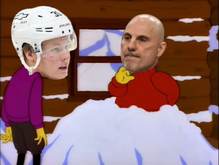 Представьте: Мичков и Токкет задержались допоздна на льду, а затем кто-то случайно запер их внутри. Сначала — жалобы на то, что придётся провести здесь всю ночь, потом — скука. А затем, глядишь, Рик и Матвей уже танцуют на прилавке с хот-догами и занимаются всеми теми вещами, которыми обычно занимаются лучшие друзья.