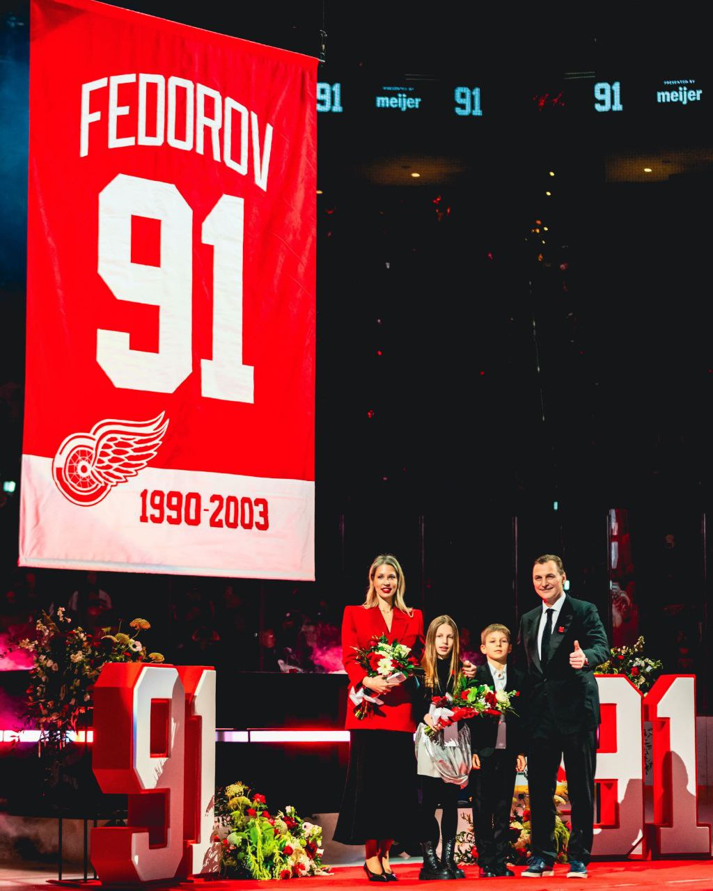 «Ред Уингз» устроили красочное чествование своей легенды, выведя из обращения 91-й номер россиянина и подняв джерси с его фамилией под своды домашней арены.