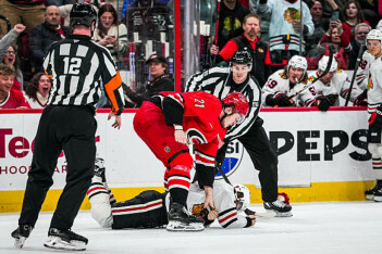Наставник «Каролины» Род Бриндамор высказался об эпизоде, в котором российский защитник «Харрикейнз» Александр Никишин поколотил нападающего «Чикаго» Оливера Мура.