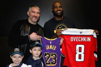 После матча легенды обменялись джерси: Овечкин подарил свой свитер Леброну, а взамен получил игровую форму «Лейкерс» с автографом.