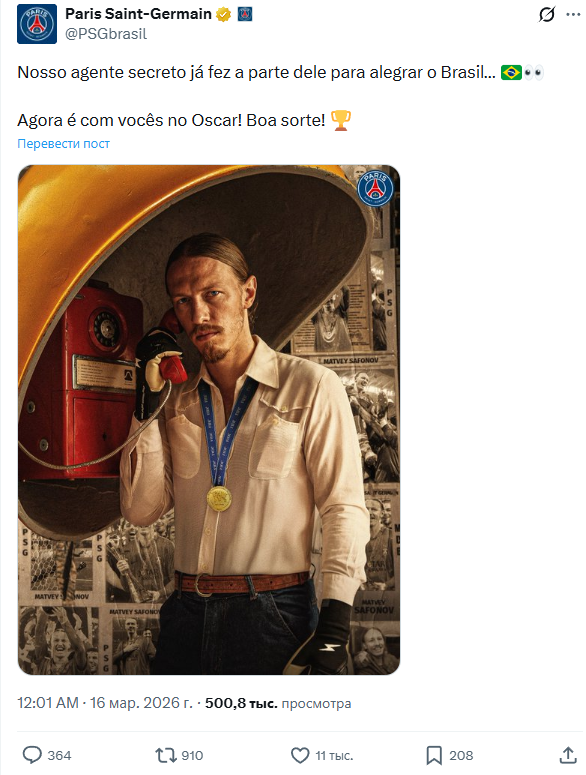 В «Пари Сен-Жермен» поиронизировали над «Фламенго» в социальных сетях за несколько часов до церемонии вручения премии «Оскар», где бразильский фильм «Тайный агент» претендовал на награды. В своей публикации французский клуб использовал изображение российского вратаря Матвея Сафонова и сделал отсылку к фильму, пожелав Бразилии удачи.