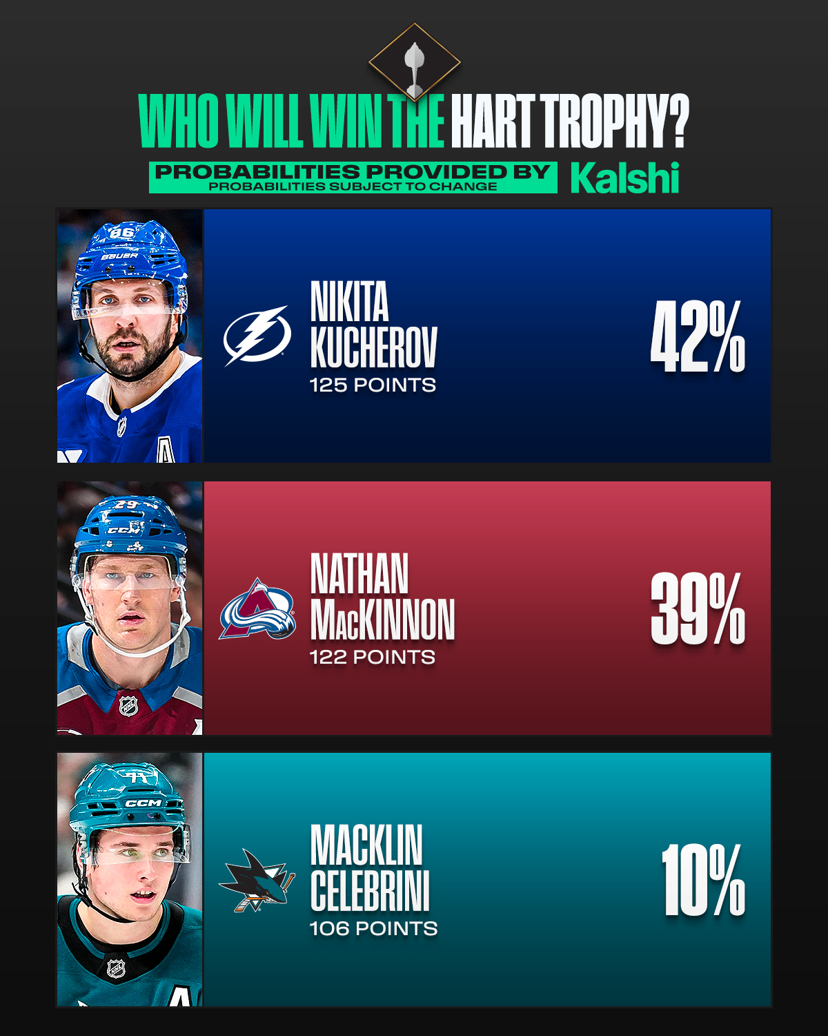 «Кто заберёт «Харт Трофи» в этом сезоне? Прогнозы предоставлены Kalshi (вероятности могут меняться)».